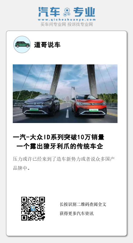 我们认同汽车产业变革已经进入了以智能汽车为代表的下半场,但视角收窄后,我们是不是也应该意识到,新能源汽车市场的发展也已经步入了下半场,一个合资车企、海外车企纷至沓来的下半场。或许,一汽-大众10万辆ID系列销量的成绩放在整个市场中微不足道,但确实已经成为了合资车企“后发制人”的具象化体现,一汽-大众或许还将带来更多惊喜表现,而压力或许也已经来到了造车新势力或者说众多国产品牌中。