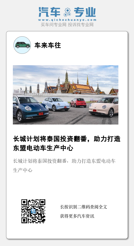 据外媒报道,随着竞争日益激烈,中国汽车制造商长城汽车计划将在泰国的投资翻倍,以保持其作为泰国领先电动汽车品牌之一的地位。