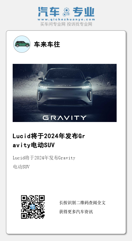 Lucid集团在11月15日发布了其Gravity电动SUV的新细节和预览图,该车将于2024年开始发售,与Air一起组成Lucid的高端电动汽车产品线。