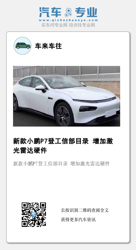 近日,工信部公布了第365批《道路机动车辆生产企业及产品公告》,在本次公告中,小鹏汽车申报了一款车型,新车是P7车型的改款版本,整体外观与现款车型相比基本保持不变,但新车在车头增加了激光雷达硬件,预计会有更加出色的智能辅助驾驶表现。