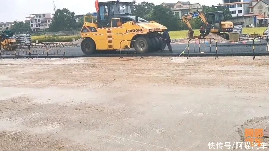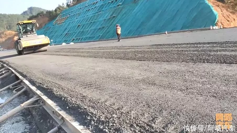 所以在施工的时候,沥青路面那个机子摊铺的,前面一边铺铺完之后,压路机压过去之后,没多久就可以走车了。