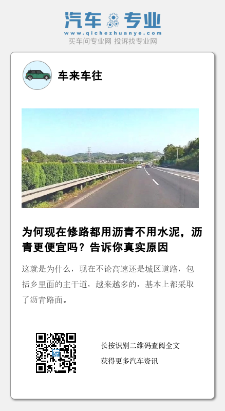 第二个,就是行车的舒适性,沥青路面开起来呢,有种柔韧性,而且车子的噪音没那么大。但是一经过水泥路面的时候,你就感觉那个噪音,立马就响起来了,就那种感觉让你很难受。
