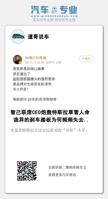 尽管并未提及特斯拉,不过从配图和描述来看,与“指名道姓”炮轰特斯拉无异。值得一提的是,关于该事故,目前尚无定论,而刘涛微博中上述发文也已经不再显示。不过,能让车企高管不顾颜面,言辞犀利的“炮轰”友商,还是不免令人好奇,究竟是特斯拉太过分还是刘涛“站队”太早。