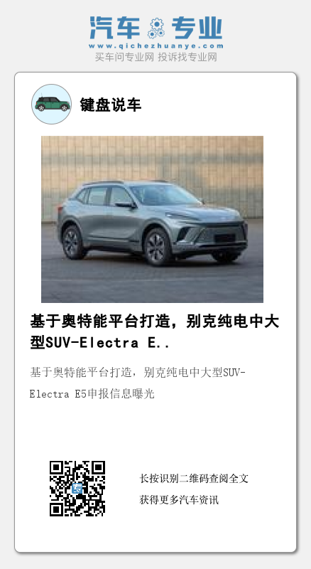 在第365批《道路机动车辆生产企业及产品公告》新产品公示中,键盘君看到了别克全新中大型SUV-Electra E5(图片)的身影,新车与凯迪拉克锐歌同样基于奥特能平台打造,配有通用最新的VCS智能座舱以及新一代Super Cruise智能驾驶辅助系统,在智能化方面让人期待。