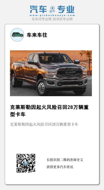 克莱斯勒母公司Stellantis在11月17日提交给美国高速公路交通安全管理局(NHTSA)的一份文件显示,该公司正在全球范围内召回28万辆Ram重型柴油卡车,原因是相关车辆存在起火风险。
