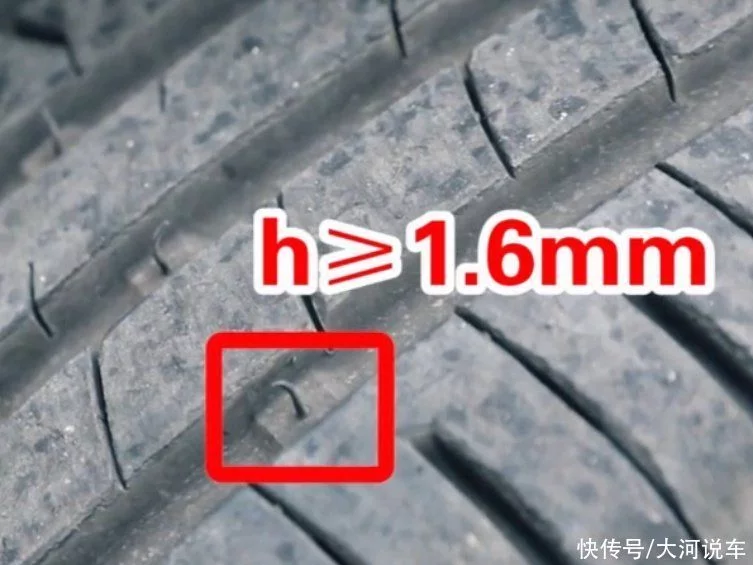 它的高度从凹槽底部算起不低于1.6毫米,如果轮胎胎面磨损到标记位置就必须及时更换,否则就会危及行车安全。