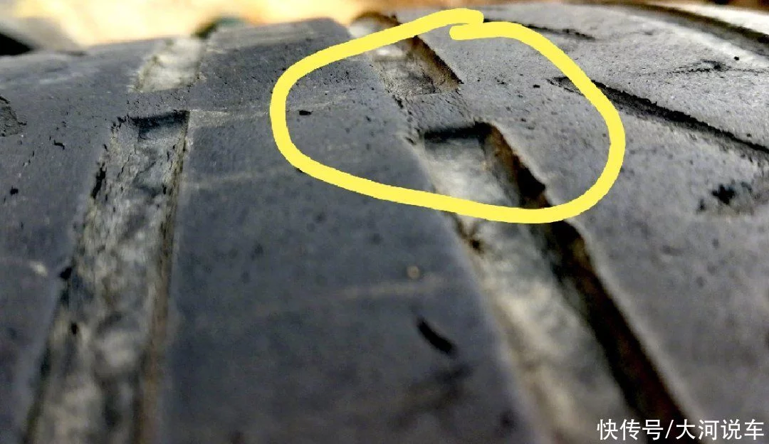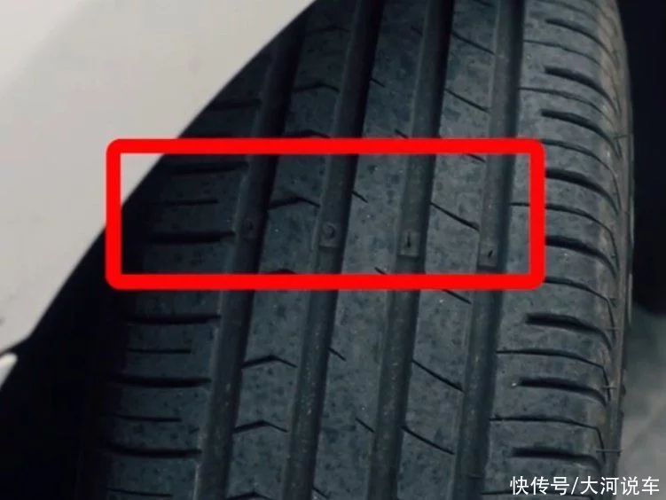 无论何种品牌、型号的轮胎,都有轮胎磨损标记,位置通常在轮胎胎面花纹的凹槽处。