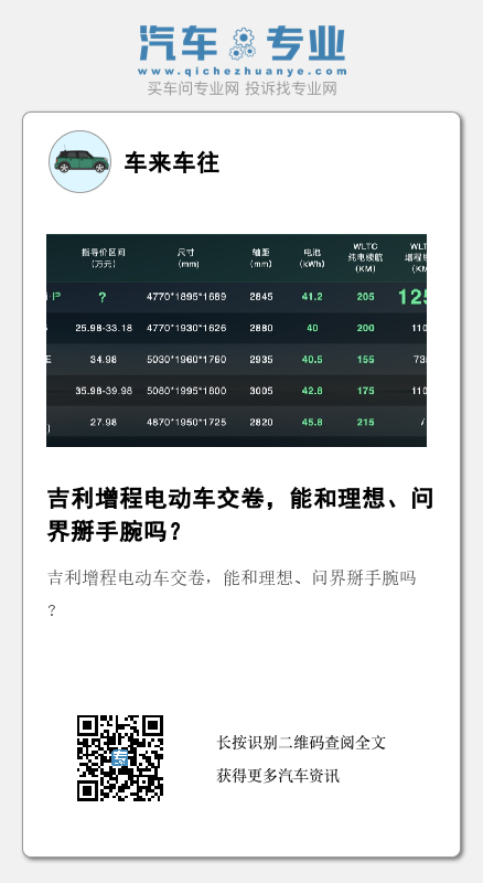 新车标配“增程”、“纯电”和“混动”三种电动技术,也是市面上唯一同时实现三种电动模式的电动车,具体来看: