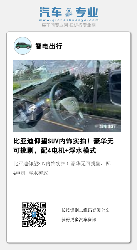 智电出行获得了比亚迪——仰望首款SUV的内饰实拍图。新车配备超大尺寸全液晶仪表、HUD抬头显示和竖置中控屏,显示屏中的车辆模型与奔驰G级高度相似。另外,实拍车型的方向盘与即将上市的护卫舰07一致,但考虑到新车定位更高,预计仅作为临时配件使用。比亚迪官方表示,这款新能源硬派越野SUV将于2023年第一季度发布,预计售价将达百万级,未来将与奔驰G级、路虎卫士等竞争。