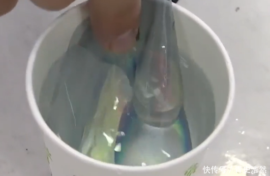 “这张是边角料的正品,你看放在水里面,就是会变颜色的。”从现场的实验效果来看,正品的车膜在放入水中,通过阳光的照射下,果然折射出了彩虹色,而从王先生的爱车的前挡,后挡和车顶天窗的玻璃处裁剪下来的车膜,放入水中是没有任何反应的。