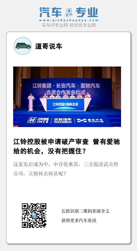 【文/道哥说车 听风吟】天眼查APP显示,11月21日,江铃控股有限公司(下称:江铃控股)新增破产审查案件,申请人为上海德梅柯汽车装备制造有限公司,经办法院为江西省南昌市中级人民法院。这意味着,江铃控股已经有了破产的风险。