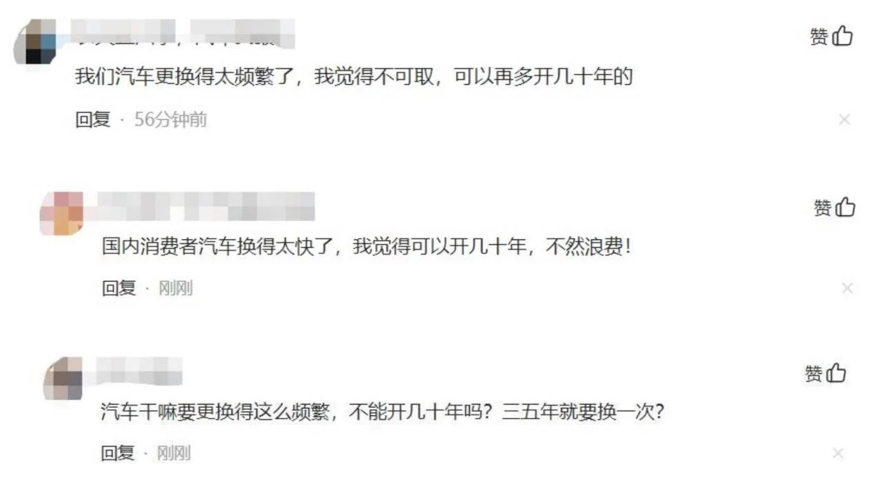 不少网友对这个现象表达了不理解,难道一款汽车,不能开几十年吗?