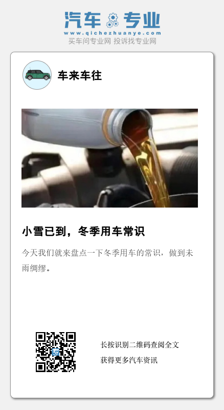 最近天气逐步转冷,和夏天不同的是,冬季用车需要注意的事项大多都是由于低温所造成的。今天我们就来盘点一下冬季用车的常识,做到未雨绸缪。