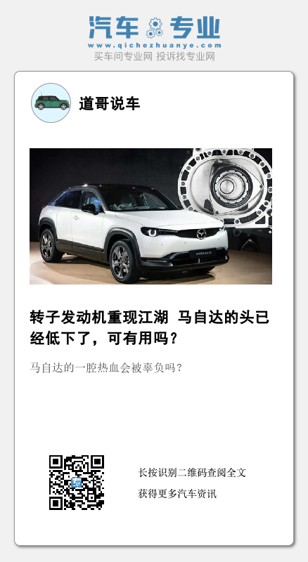 当然,距离马自达RX-8退市已经过去了10年时间,马自达转子发动机的水平到了何种地步已无从考证,也许这个曾经高大上的技术,真的能够给马自达电动化进程带来巨大助力,也说不定。