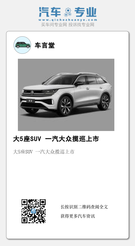 11月18日,一汽大众全新5座中大型SUV揽巡(图片|配置|询价)正式上市,本次共推出5款车型,均搭载2.0T发动机,售价区间为27.49-32.59万元。
