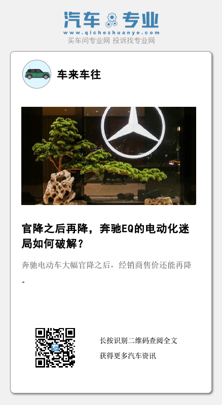 奔驰电动车大幅官降之后,经销商售价还能再降。