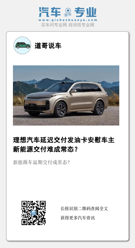 从去年开始,新能源汽车品牌延迟交付的就并不少见,而理想汽车也不是头一回发布延迟交付的说明了。今年8月,理想汽车四川地区限电,理想汽车在四川绵阳的增程器工厂供应延迟,导致交付延期,并向用户推送延迟交付的说明。彼时,理想汽车也是以油卡作为赔偿,按照当时的说法,是会给9月才被交付理想L9的用户补偿1000元油卡。由于理想汽车旗下车型均为增程式动力系统,对加油还是有需求的,而理想汽车补偿油卡也算是比较实惠的了。