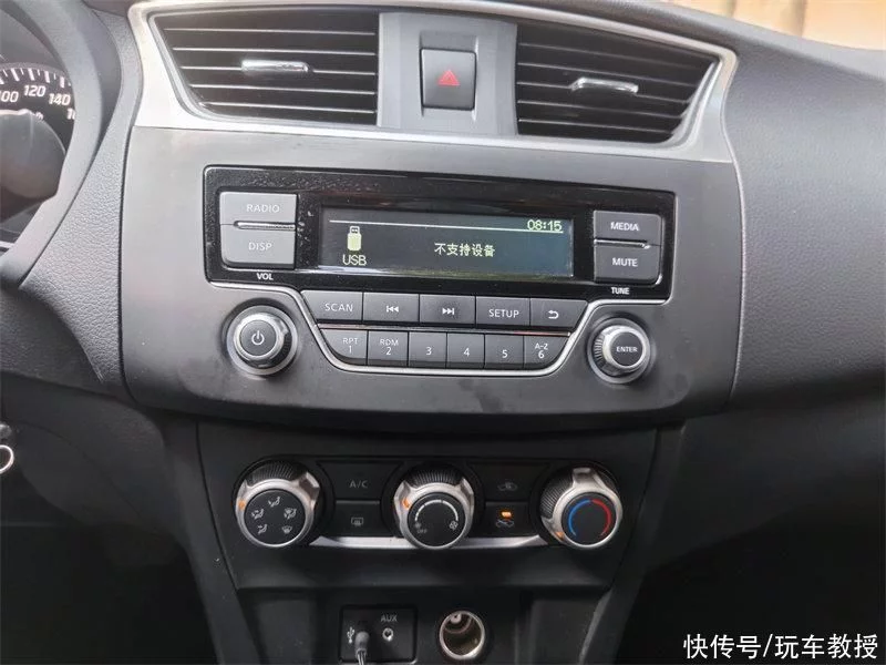 工作人员在交钥匙给我前特地交代,这台车是没有倒车影像的,原车也没有倒车雷达,但他们自己装了倒车雷达。接过钥匙,坐进车内,下意识地找启动开关,无果,在启动开关位置发现的,是传统的机械钥匙启动装置。再看看钥匙本身,再看看中控台上那个光秃秃的收音机模块,这一切都让我更加确定了,我面前的这台车,就是经典轩逸在零售市场不销售不排产的最低配车型。