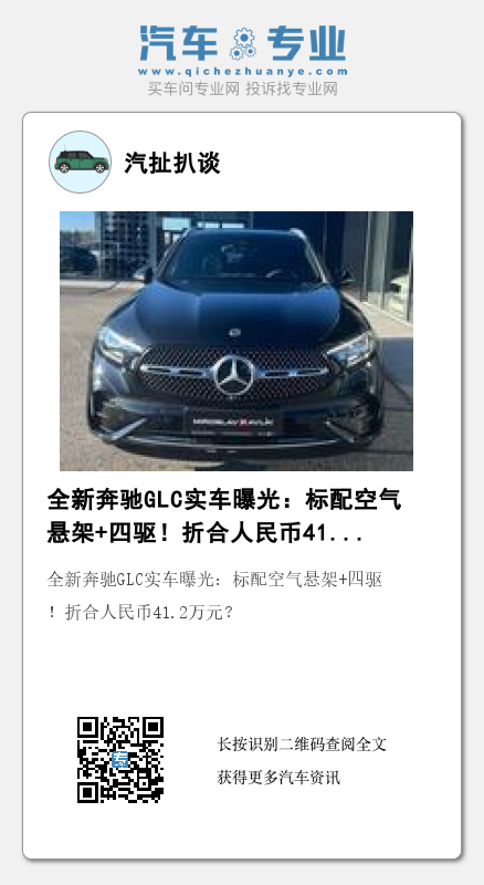 近日,我们从相关渠道获取了一组全新奔驰GLC的海外实车图,新车提供两种版本,实拍车辆是带有AMG Line的运动套件版本的车型,外观上进行了优化,配置上也有所升级。新款奔驰GLC由德国不来梅和辛德芬根工厂生产,其在欧洲的起售价为5.76万欧元,约合人民币41.2万元。
