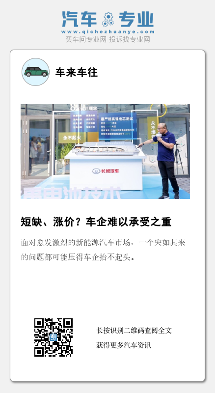 需要注意的是,这还只是原材料的上涨,而由原材料上涨所带来的成本压力传导到车企后,车企所要承受的将是更高的成本。