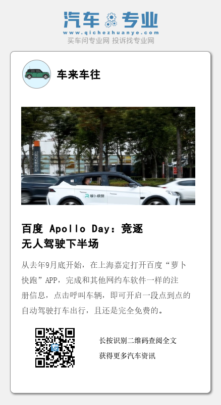 从去年9月底开始,在上海嘉定打开百度“萝卜快跑”APP,完成和其他网约车软件一样的注册信息,点击呼叫车辆,即可开启一段点到点的自动驾驶打车出行,且还是完全免费的。