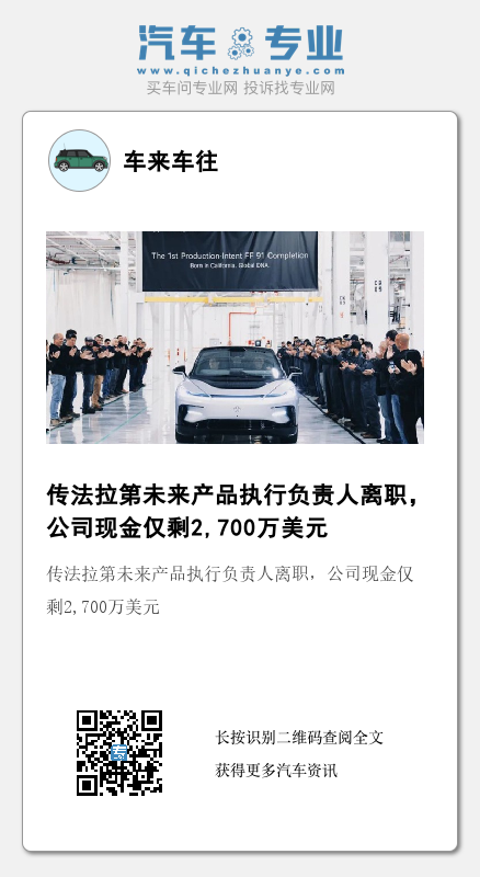 知情人士透露,截至10月25日,法拉第未来只有2,700万美元现金,正试图通过本周在多支团队内进行一轮休假来削减成本。该公司曾在10月底宣布在全公司范围内至少减薪25%。