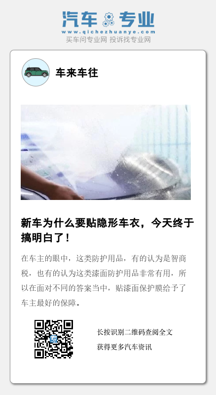 买完车后,有个问题一直萦绕在很多车主心头上,那就是新车该不该贴隐形车衣。