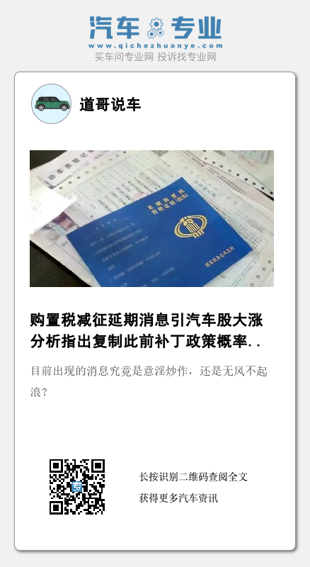 不过,目前并未有关于购置税减征政策延期的官方说法。