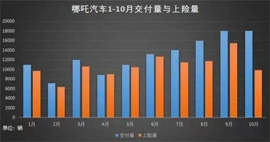 编辑注意到,今年1-10月,哪吒汽车交付量与上险量均有一定差距,相较于前6个月来说,7月以来,其交付量和上险量的差距有明显扩大的趋势,7月相差2573辆,8月相差4267辆,9月相差1510辆,10月更是高达8184辆。这意味着,哪吒汽车连续多月的交付量与上险量都相差较大,构不上上述车企高管口中的“一个月差距过大属于正常”的情况。