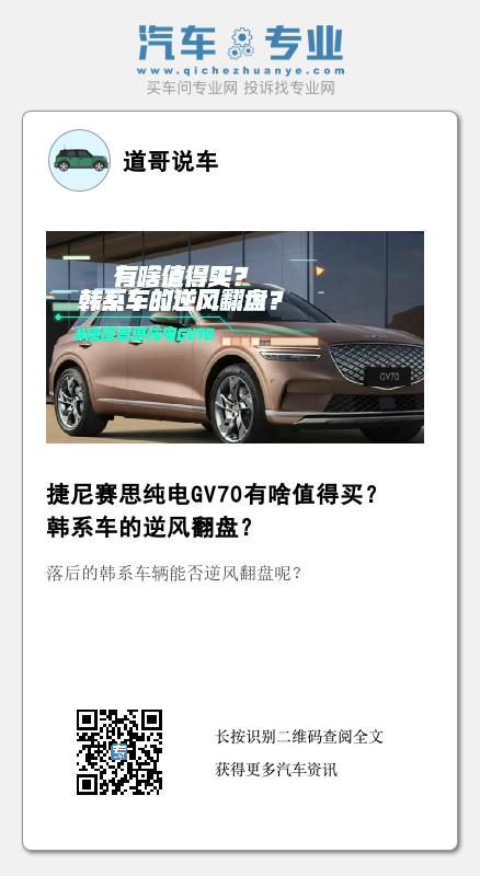 在新能源车席卷市场、风靡全球的时候,落后的韩系车辆能否逆风翻盘呢?让我们一起来看看捷尼赛思纯电GV70。