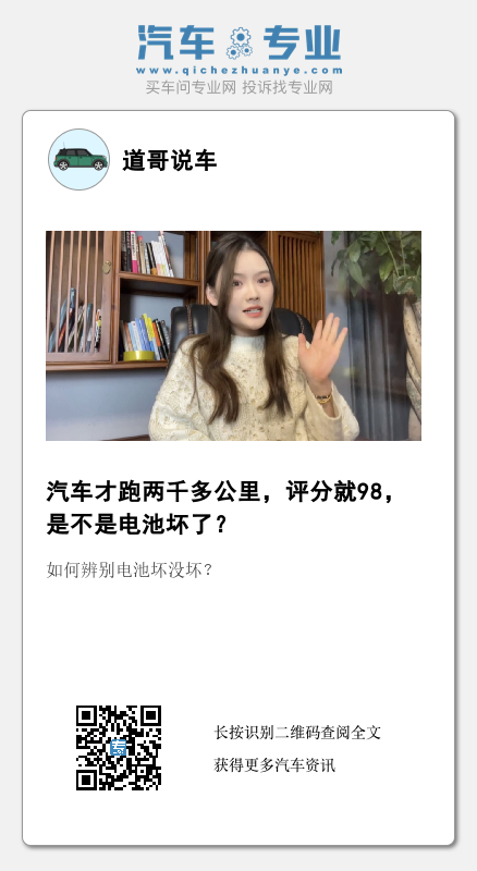 汽车才跑两千多公里,评分就98,是不是电池坏了?