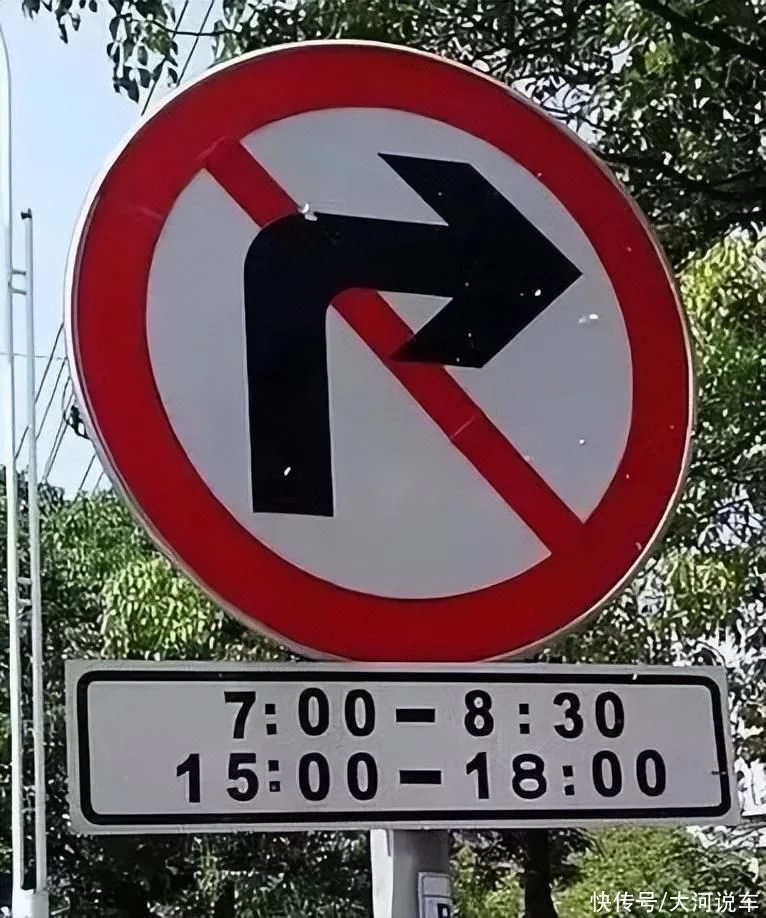 为了缓解通行压力,有些地方的路口会规定分时段左转/右转。经过此类路口,一定要看清楚指示牌上标明的禁止转弯的时间段,防止走冤枉路,甚至因“闯禁行”受到处罚。