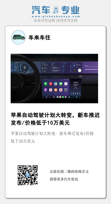 目前,苹果计划开发一款汽车,可以让司机在高速公路上执行其他任务,比如看电影或玩游戏,但是如果车辆到达城市街道或遇到恶劣天气,会有足够的时间提醒司机切换到手动控制。苹果内部已经讨论先在北美推出该功能,然后逐步改进和扩展。