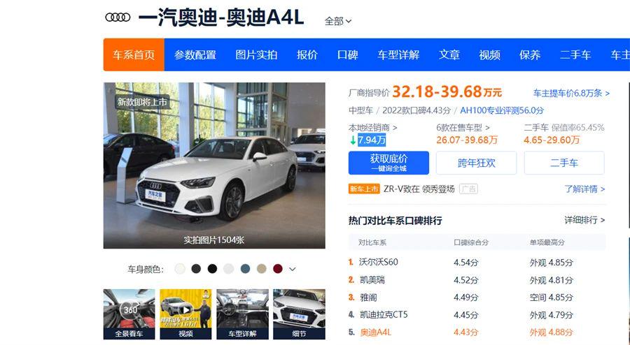 尽管以奥迪A4L的官方指导价(32.18-39.68万元)来看,这款车型并不符合购置税减半的补贴标准。不过在奥迪A4L强大的终端优惠下,大部分车型都能够享受到购置税减征的福利,根据汽车之家的行情参考,奥迪A4L的终端优惠在7.94万,也就是说,奥迪A4L车主中的一部分是可以享受该政策优惠的。