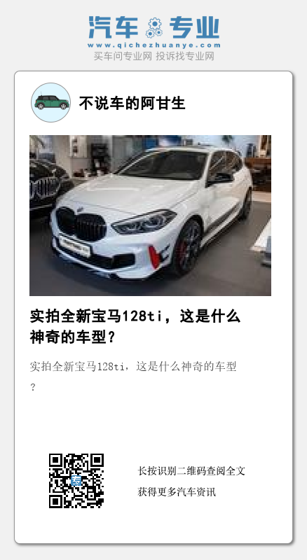 全新1系的128ti车型,搭载一具BMW TwinPower Turbo 2.0T横置直列四缸汽油发动机,最大马力265匹,峰值扭矩400N·m,零百加6.1秒,并配备8速手自一体变速箱和前轴托森机械式限滑差速器、M运动悬架、可变运动型转向系统。从性能标定来看,虽高于常规车型,但与顶级车型M135i有一定差距,但128ti却是配备了很多来自BMW M的底盘技术。