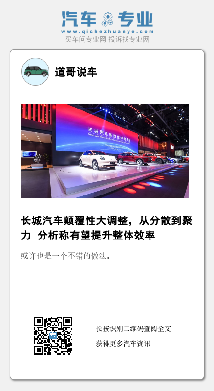 从长城汽车此次组织架构调整来看,某种程度上来说是对此前“一车一品牌一公司”的组织架构进行颠覆的做法。长城汽车正在向全球化、电动化、高端化的新阶段迈进,从自我内部组织变革开始的果决是令人钦佩的。而以哈弗维护基本盘,以魏牌、欧拉、坦克、沙龙寻找更多的机会,或许也是一个不错的做法。