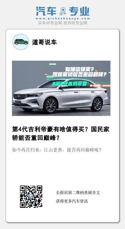 曾经风靡一时的“国民家轿”,如今再次归来,江山更替,能否再回巅峰呢?让我们一起来看看吉利帝豪新车型。