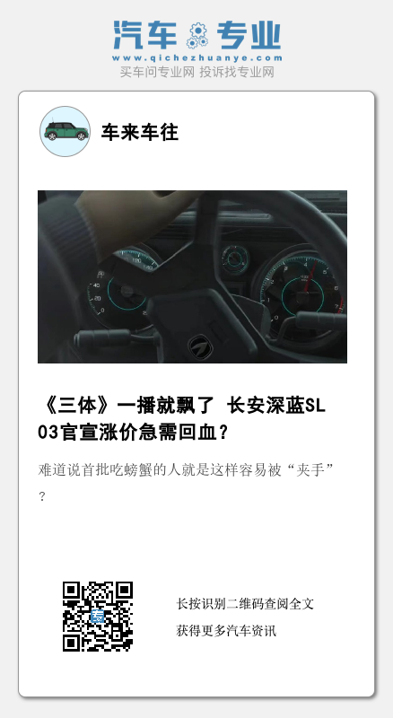 而不过半个月后,长安深蓝便正式官宣涨价,且在《三体》动画开播的第二天,是早有涨价计划还是砸入巨额营销费用需要些补偿?可以肯定的是,在《三体》开播第二天发布涨价通知,倒是能很好的蹭一波《三体》的热度。