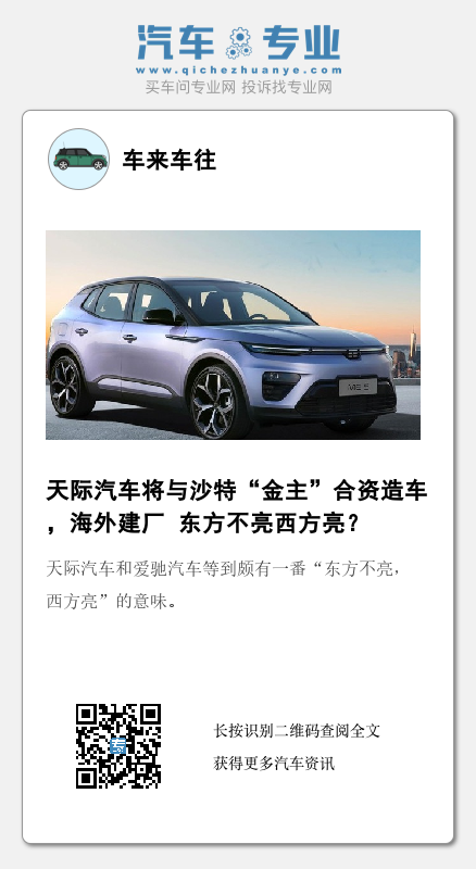 《汽车专业网》消息,12月12日,天际汽车宣布近日完成与沙特的合资合同签约,将同沙特本地Sumou Holding成立合资公司,共同在沙特阿拉伯投资两期约5亿美元(约35亿元人民币),设立新能源汽车的生产制造和研发基地,将年产约10万台新能源车。此外,天际汽车也在同包括沙特主权基金和阿美石油公司在内的沙特投资人及股东方商议投资策略。
