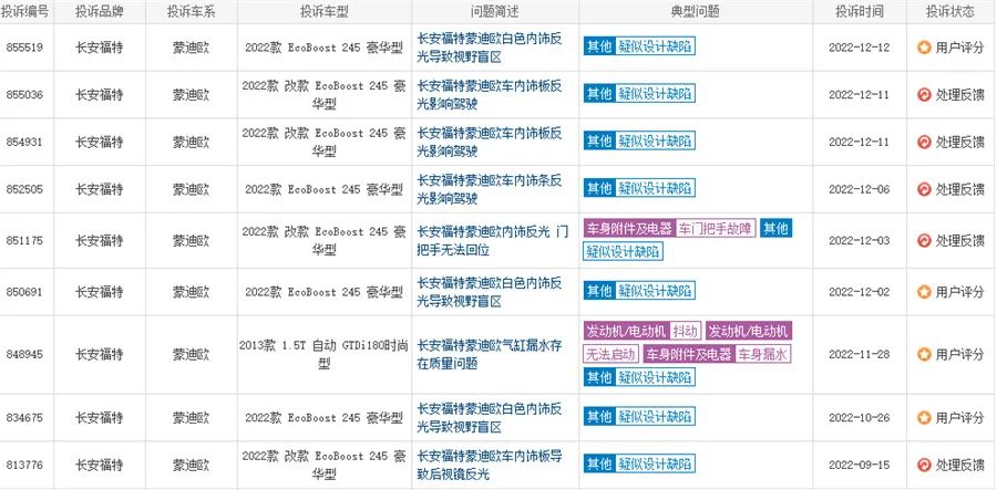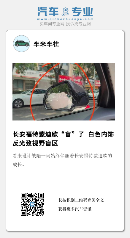 日前,在某第三方汽车品质评价平台上,《汽车专业网》编辑注意到有多位车主投诉2022款长安福特蒙迪欧疑似设计缺陷——白色内饰反光导致视野盲区。
