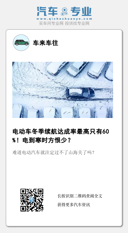 那么试想,如果在加上冬季低温的影响,电动车主真正能用到的续航里程又会是多少呢?