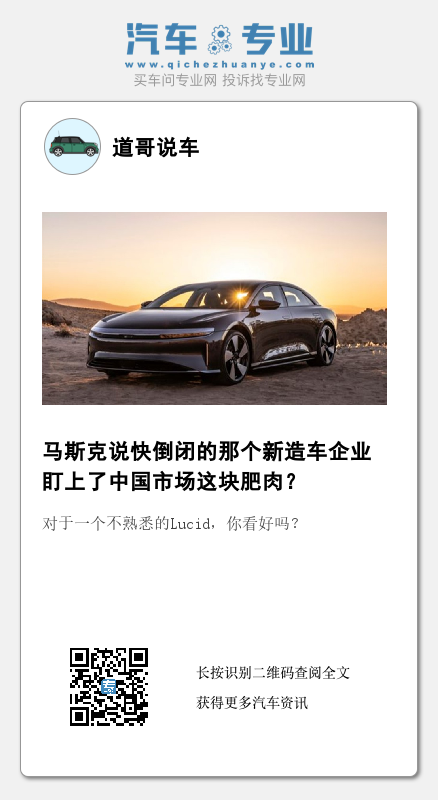 也就是说,在中国存在了13年之久的“新能源汽车购置补贴”这就没有了。当然,与包括特斯拉在内的绝大多数新能源车企不同,Lucid的定位也是高端豪华电动汽车,首款量产车型Lucid Air起售价目前达到8.74万美元(约合人民币61万元),这款车虽然对标特斯拉Model S,但Lucid并没有如Model 3一般的“平民车”,而对于那部分人群来说,购置补贴存在与否的意义或许并不大。