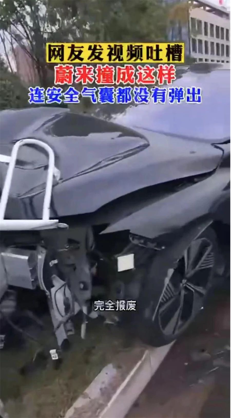“报废,完全报废了,这个车撞成这样,安全气囊都没有弹出来”,日前,网传视频中一男子对事故车辆做以上评价。根据网传视频内容,事故车辆为蔚来ET7,该车辆疑似被追尾后撞上路边栏杆。
