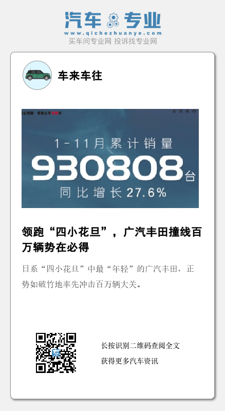 丰田系方面,刚刚达成累计下线1000万辆汽车的一汽丰田其实近况并不乐观。有报道显示,其1-11月累计销量不足70万辆,不仅达成百万辆目标无望,较上一年还出现了滑坡。究其原因,一汽丰田阵容中除了卡罗拉之外,几乎再难找出销量标杆产品,“全球车”RAV4始终不温不火,亚洲龙表现也远不及凯美瑞,还有怎么也“梳理不清”的皇冠……此外,有消息称,董修惠将接棒胡绍航出任一汽丰田汽车有限公司副总经理,兼任一汽丰田汽车销售有限公司党委书记、总经理,在业界看来,此举意在改变公司现状,重拾升势。
