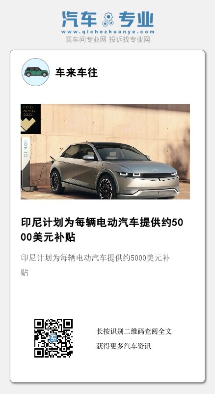 印尼政府的补贴旨在到2030年将当地电动汽车的销量提高三倍,同时引入电动汽车制造商在当地投资,帮助总统佐科·维多多(Joko Widodo)实现建立一条本土端到端的电动汽车供应链的愿景。随着印尼继续推动在国内生产零部件,目前尚不清楚这些车辆使用的本土产零部件或材料的比例需要达到多少才有资格获得补贴。