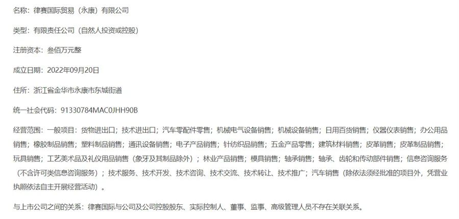 不过,令人意外的是,众泰汽车的代理商颇为“年轻”,且众泰汽车方面表示,公司也是首次与律赛国际合作。资料显示,律赛国际在今年9月20日设立,是一家成立不足3个月的公司,股东为三名自然人,由朱肇瑾、唐世娟、王瑛分别持股35%、35%、30%。朱肇瑾担任公司执行董事,经理,为法定代表人。对于一家颇为年轻,且背景神秘的公司来说,其是否能够承担起众泰汽车1万辆新车的销售任务呢?