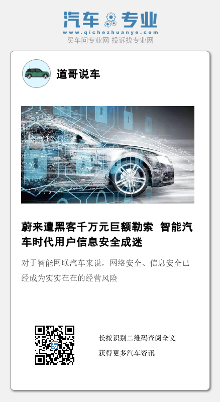 此外,大量信息泄露的背后暴露出了智能汽车时代用户数据的敏感性。“话说连数据安全都无法保证的公司,是不是会自己窃取用户信息?又会不会远程控制车辆呢?”
