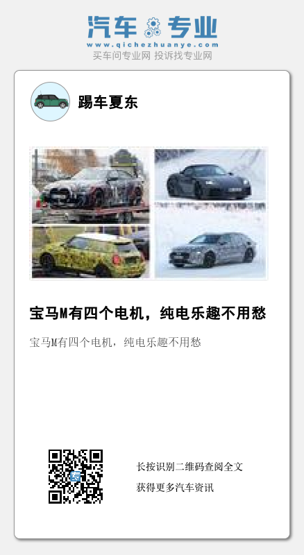 我们现在还不清楚四电机技术将在何时运用到量产车型上,但可以肯定的是不仅它的功率将十分惊人,而且对每个车轮的独立控制势必将让这些车型的弯道性能达到前所未有的水平——担心电动的宝马M将失去魅力?恐怕完全没有必要。