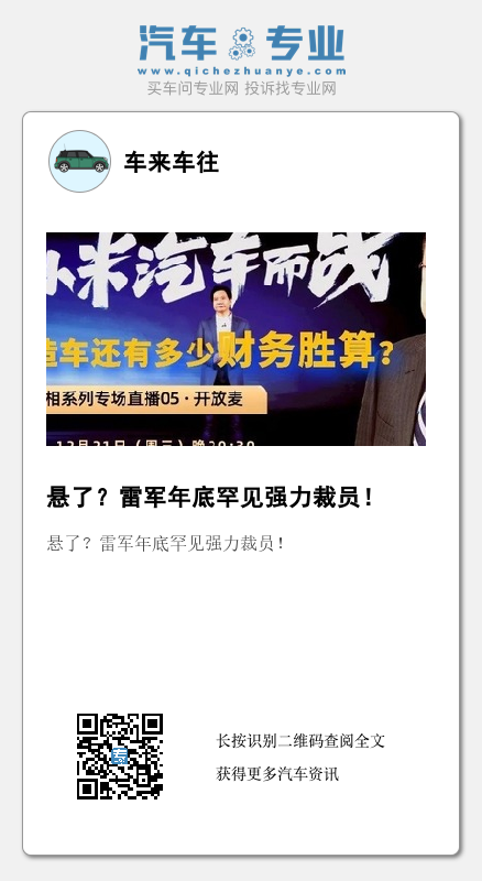 如今来看,小米业绩承压后,选择裁员来节省资金投入,更多的是为了全身心的投入小米造车中。