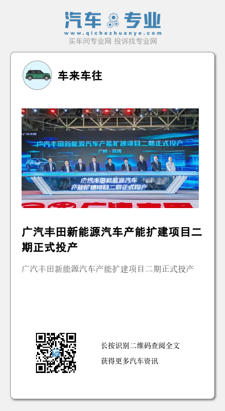 另按照规划,广汽丰田将全面扩大纯电动产品阵容,加快新能源产业生态布局,计划到2025年电动化车型销量占比近60%,2035年达100%。